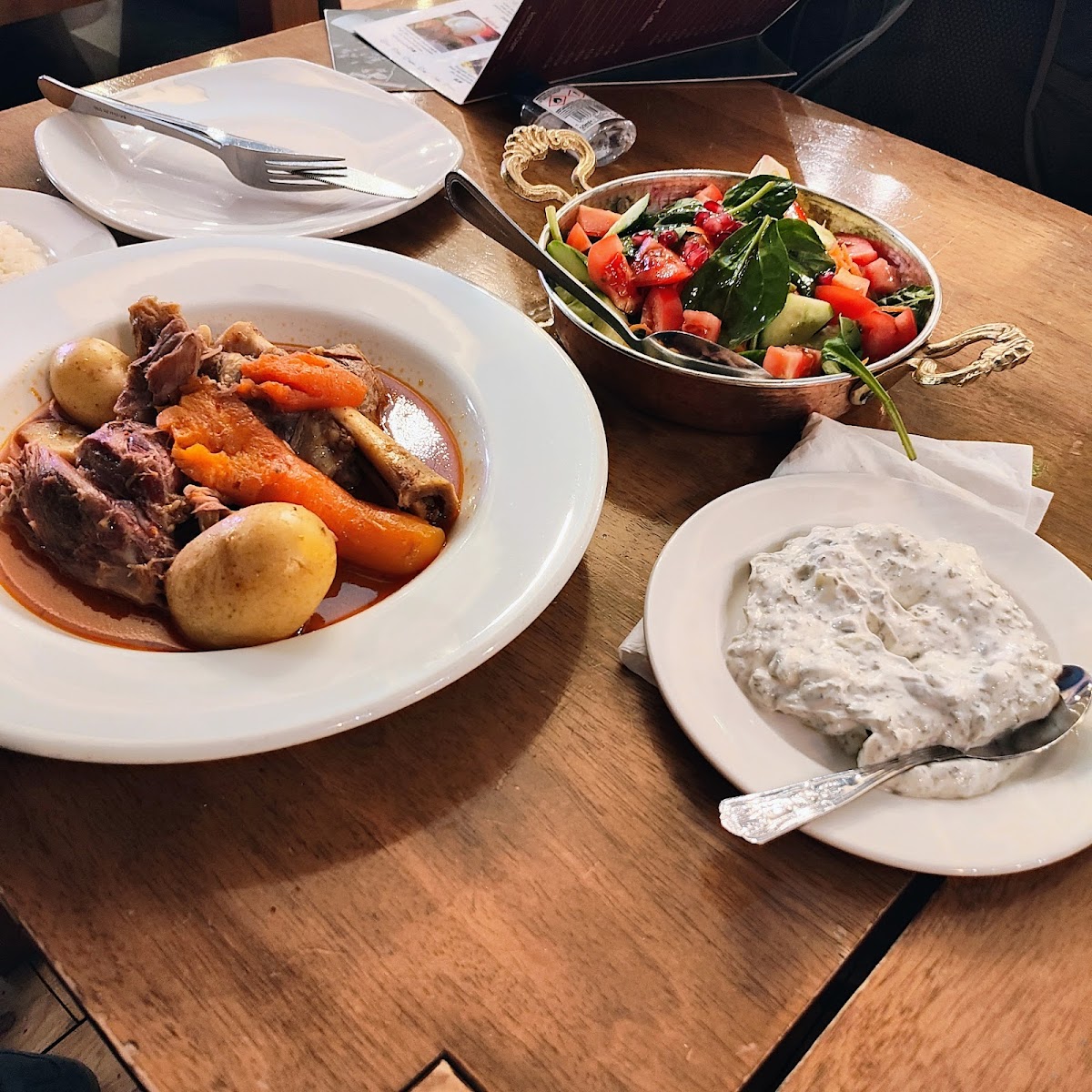 For those with a sweet tooth, the Orange Syrup Sponge is a must-try dessert. Its zesty, citrusy flavor combined with the rich syrup creates a sweet, satisfying end to your meal. The restaurant’s Kleftiko, a slow-cooked lamb dish, is another highlight of the menu, offering a melt-in-your-mouth experience that is perfect for those looking for something hearty and flavorful.
